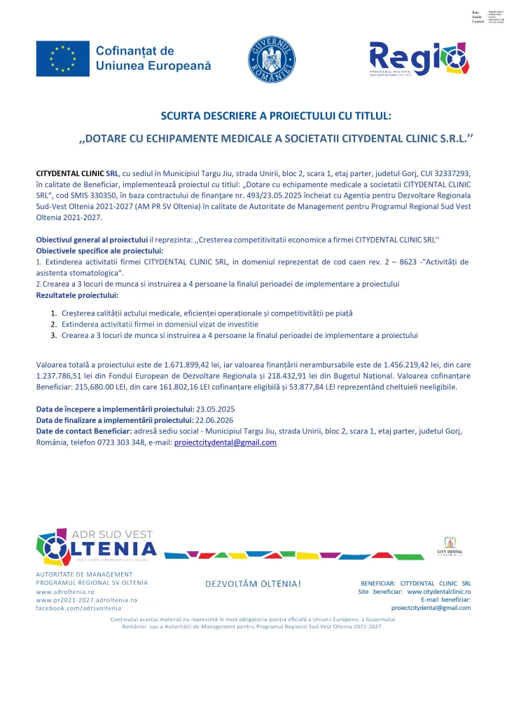 DOTARE CU ECHIPAMENTE MEDICALE CITYDENTAL CLINIC S.R.L.